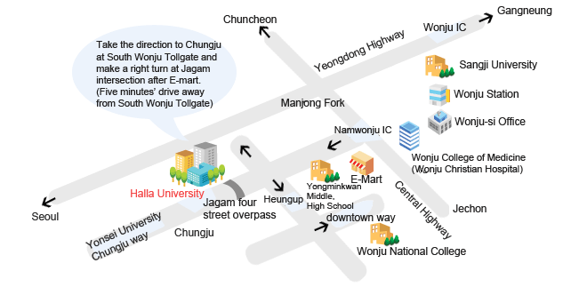 Please come to Room #304, Technical Business Incubator at the back of the main building of Halla University